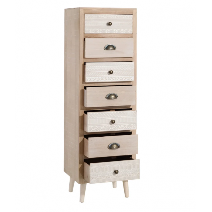 Semainier 108.239 structure en bois de pin , 7 tiroirs, finition natural et blanc, L.38 P.31 H.120.