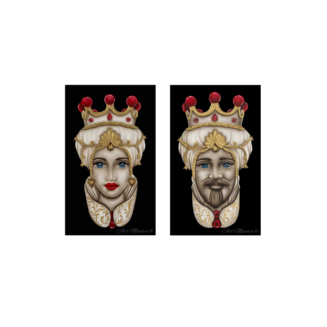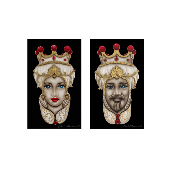 Tableau peint à la main, représentant un couple de Mori,  PZ 2, L.65 H.110.