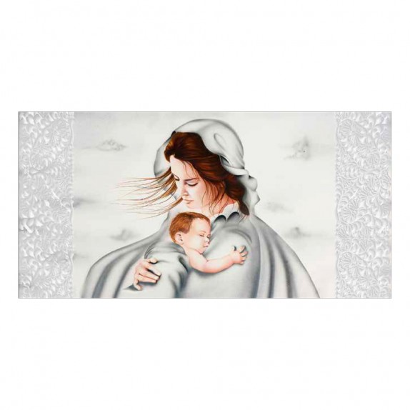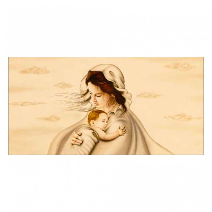 Peinture sur toile représentant l'étreinte de la vierge Marie avec son enfant. L'art sacré rencontre l'élégance dans une représentation adaptée à tout environnement. De la chambre à coucher au salon, il donnera une touche de classe à vos espaces.