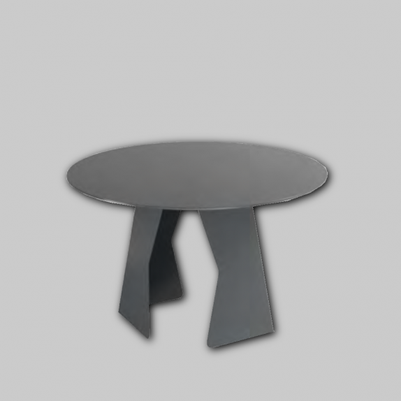 Les pieds en métal vernis supporte le plateau en verre laminé, dit feuilleté, avec effet marbre ou en verre anthracite.