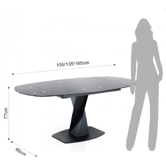 cm. H.77 x P.95 x L.165 (2° rallonge)