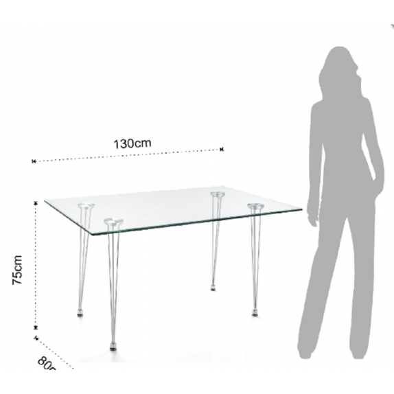 verre trempé transparent sp. mm 10 pieds en métal chromé dimensions cm H75 L130 P80