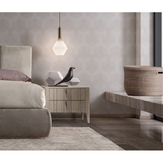 Table de chevet Domino DON7002K , structure Noyer Canaletto ,équipée de 2 tiroirs, décoré de lattes et rayures , finition Canaletto naturel , L.60 P.43 H.48.