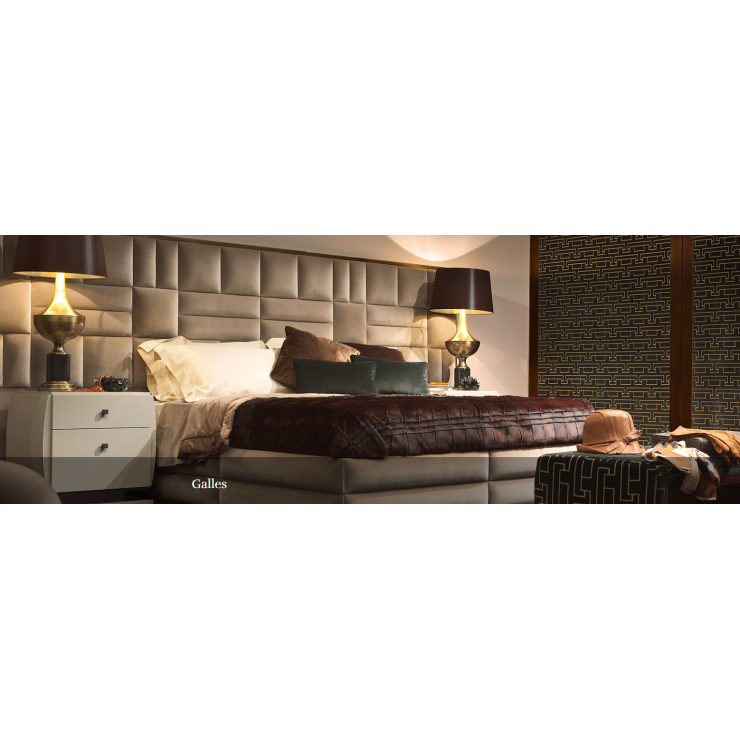Galles est la couverture idéale pour l'ameublement de la chambre classique qui envisage également le style moderne. De plus, ce meuble peut parfaitement correspondre au style de votre chambre luxueuse car les matériaux sont personnalisables . La fourrure douce est disponible en cinq couleurs, tandis que pour la monture, vous avez deux types de tissus disponibles qui sont proposés dans dix-sept teintes différentes. Créez votre combinaison originale et donnez vie à une nouvelle couverture.