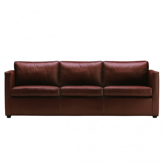 Divano a tre posti 683 design Amonymous by MVSEVM. E' in legno massello ricoperto di espanso, cuscini spalliera in espanso e piuma d'oca e cuscini seduta in espanso e dacron. Sfoderabile. Dimensioni L 196 cm P 85 cm H 85 cm. In foto in pelle cat.E