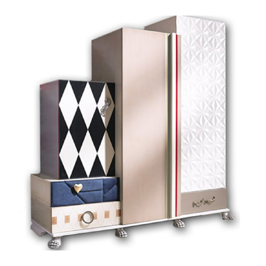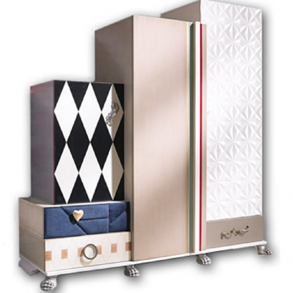 Armadio composto da 3 moduli su una base. 3 ante e 2 cassetti.