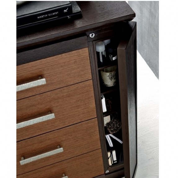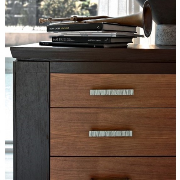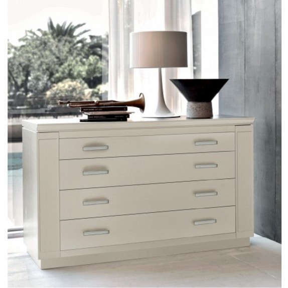 Comò Spirea. Collezione Melograno by Le Fablier ha 4 cassetti e i laterali apribili. Con struttura di frassino spazzolato bianco. Misura: L 142 cm P 53 cm H 85 cm.