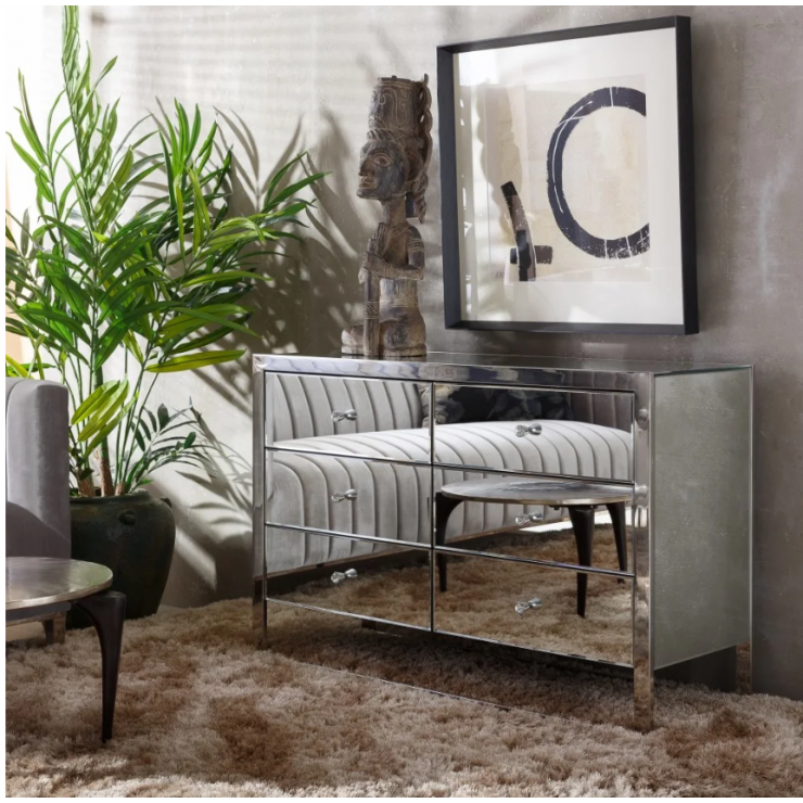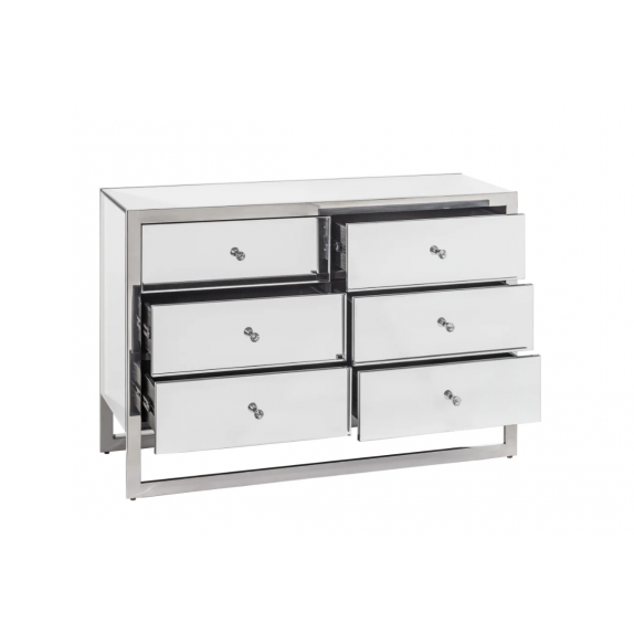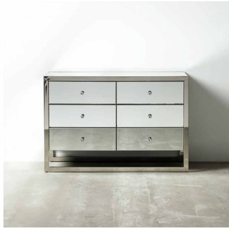 Comò 151.285 struttura in legno rivestito in vetro a 6 cassetti, maniglie in zinco, L.128 P.42 H.80.