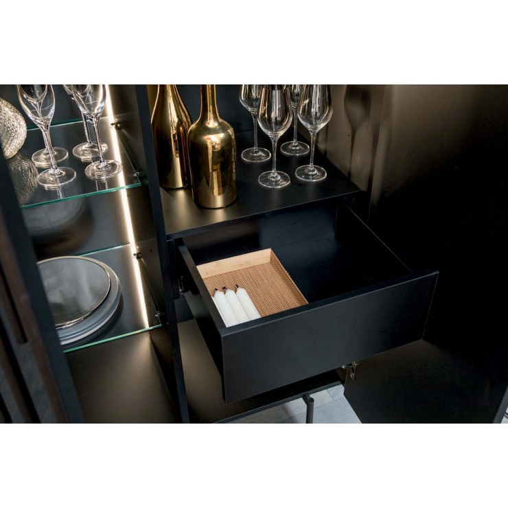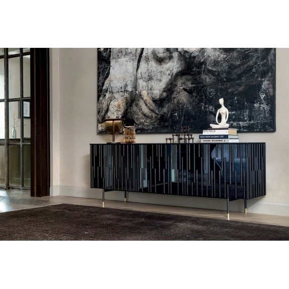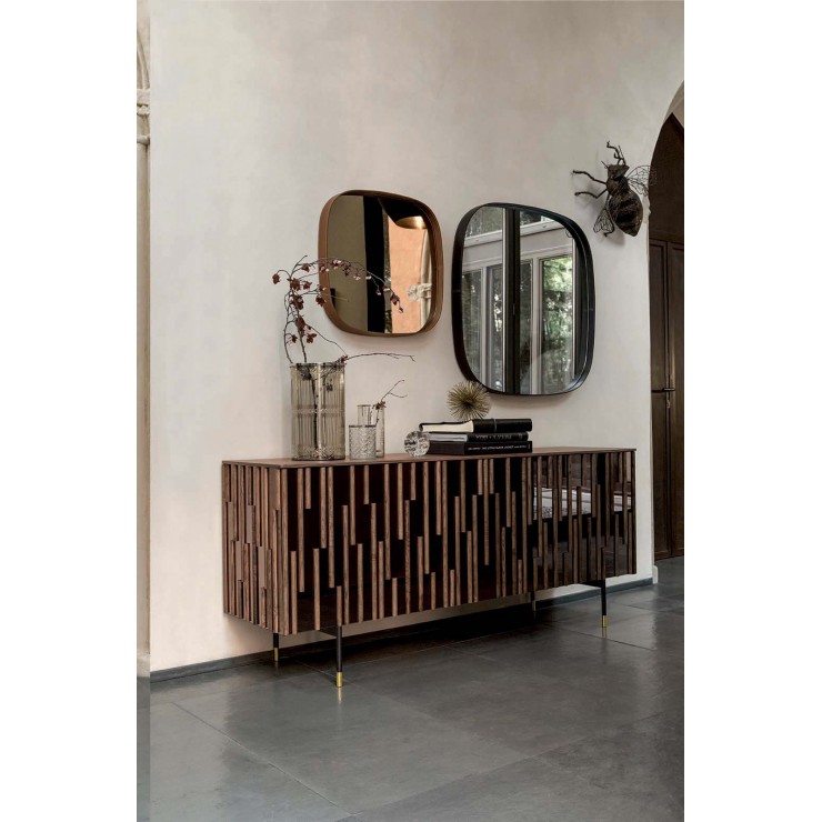 Un programma giorno ed un programma notte completo ed estremamente elegante. Gocce in legno massello applicate con estrema cura alle ante effetto specchio. Un top sagomato e stondato, fine e sofisticato; una struttura in metallo con inserti in finitura oro. tutto ciò per non lasciare nulla al caso.