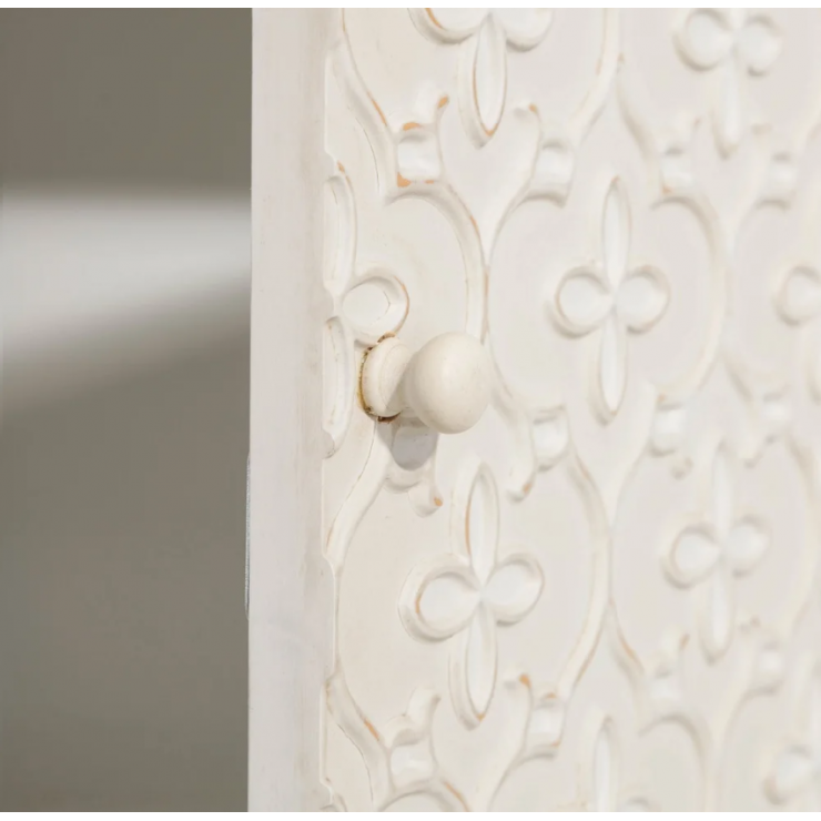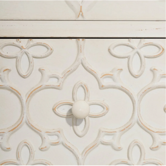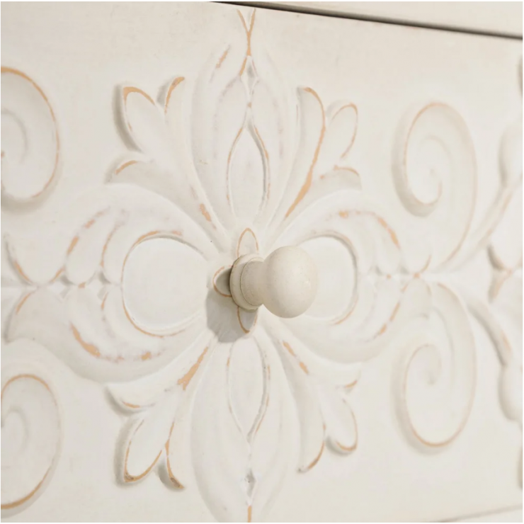 Credenza 108.415 ,struttura in legno con gambe in ferro, attrezzato di 4 cassetti e 1 anta ,finitura crema. L. 80 P.30 H.80