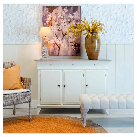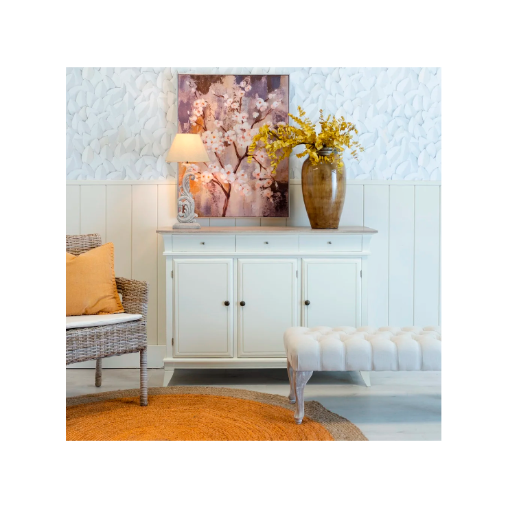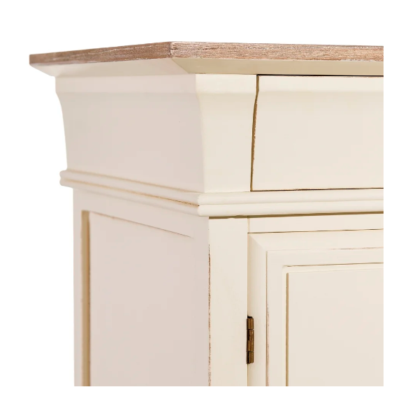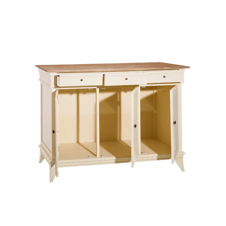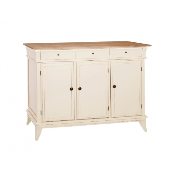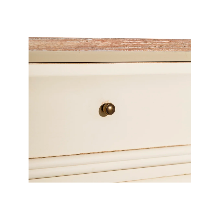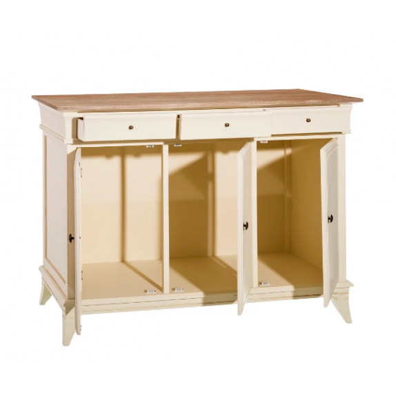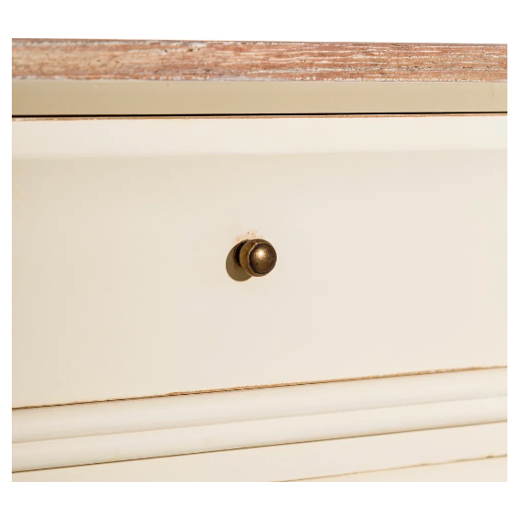 Credenza 106345 ,struttura in legno di pino, attrezzata di 3 cassetti e 3 ante, finitura naturale e crema, L.125 P.47 H.90