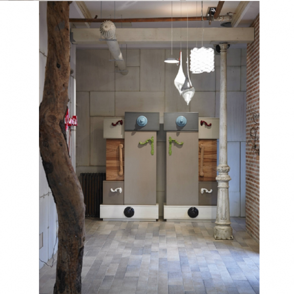 Avorio, talpa, caffè, sabbia, perla, argento patinato. Manici in legno intagliato a mano in