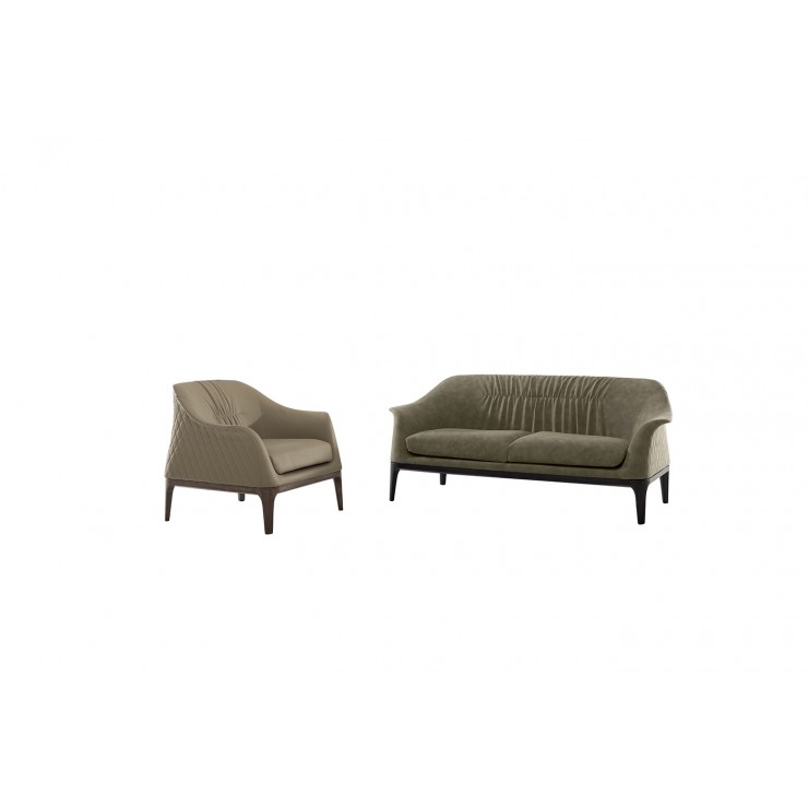 Una poltrona o un divano che si ispira ad un lusso morbido e delicato: il legno di frassino, in finitura noce Canaletto, rovere scuro, o rovere naturale, si abbina lieve al rivestimento in pelle ed eco-pelle, in tutte le colorazioni disponibili. Trapuntata e rivestita con la migliore qualità Made in Italy, Tiffany riesce a combinare materiali e linee complesse, unendoli in un prodotto dalla grazia unica.