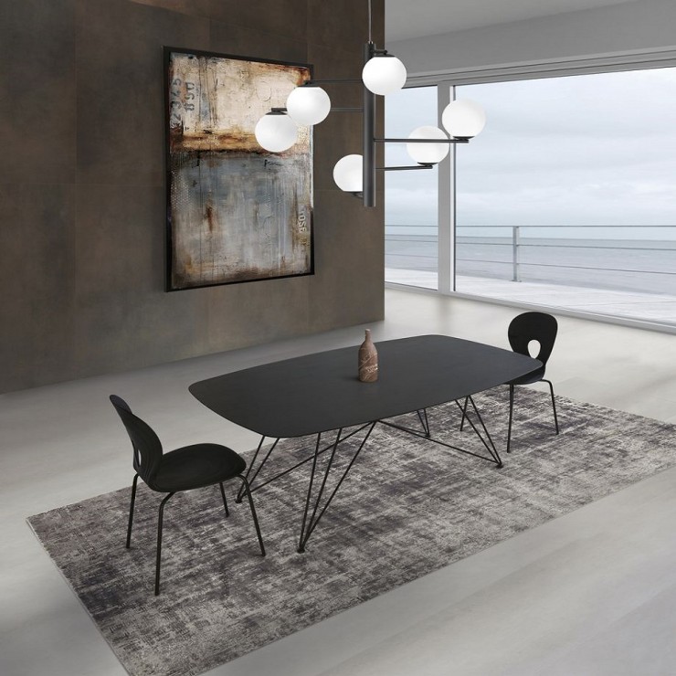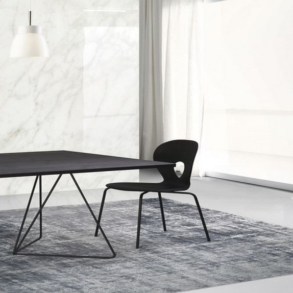 Due sedie con struttura in acciaio verniciata bianco oppure nero, e seduta in poliuretano espanso rigido bianca o nera.