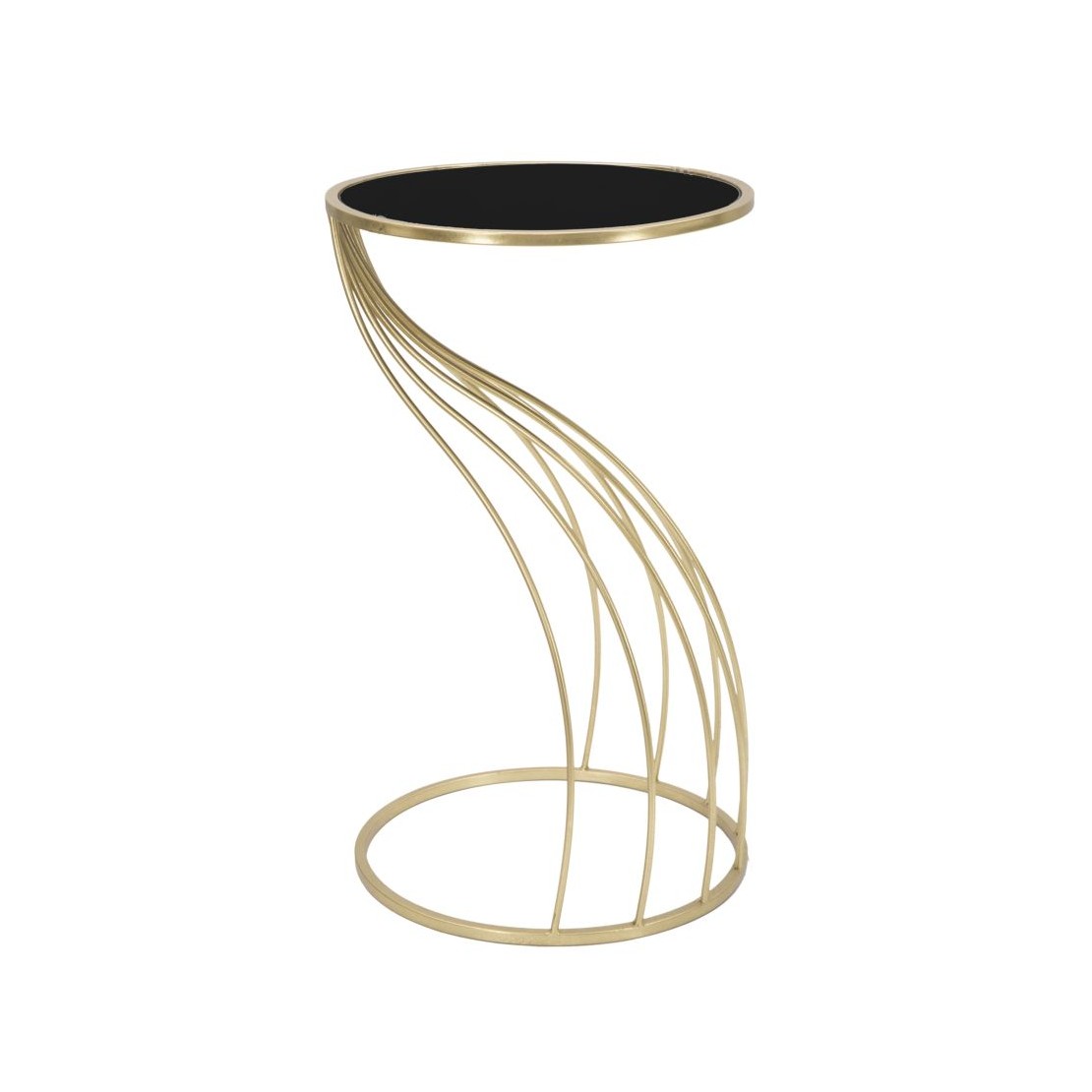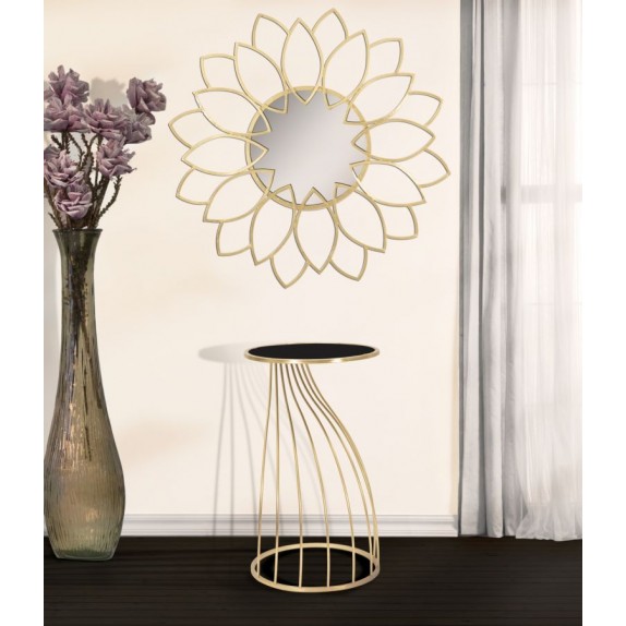 tavolinetto realizzato in ferro colore oro piano vetro nero. Ø 43X73