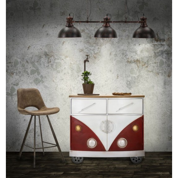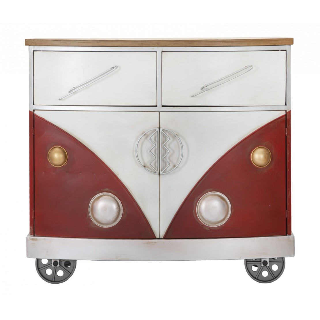 Mobiletto realizzato in ferro, legno di abete e mdf, attrezzato da 2 ante e 2 cassetti. 90 x 81 x 42 cm.