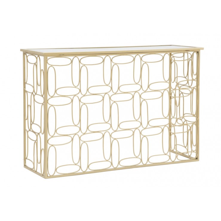 Consolle realizzata in ferro colore oro e specchio.120 x 81 x 40 cm