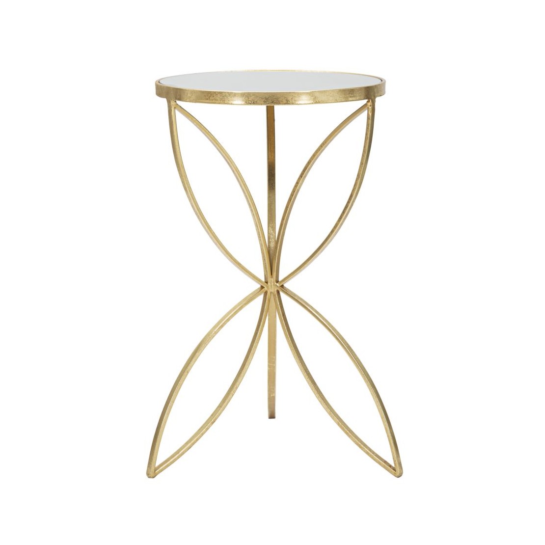 tavolinetto in ferro colore oro e specchio. Ø 35X60