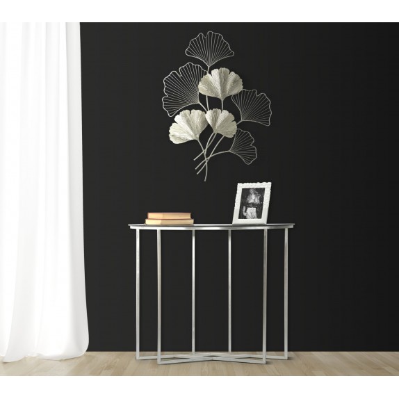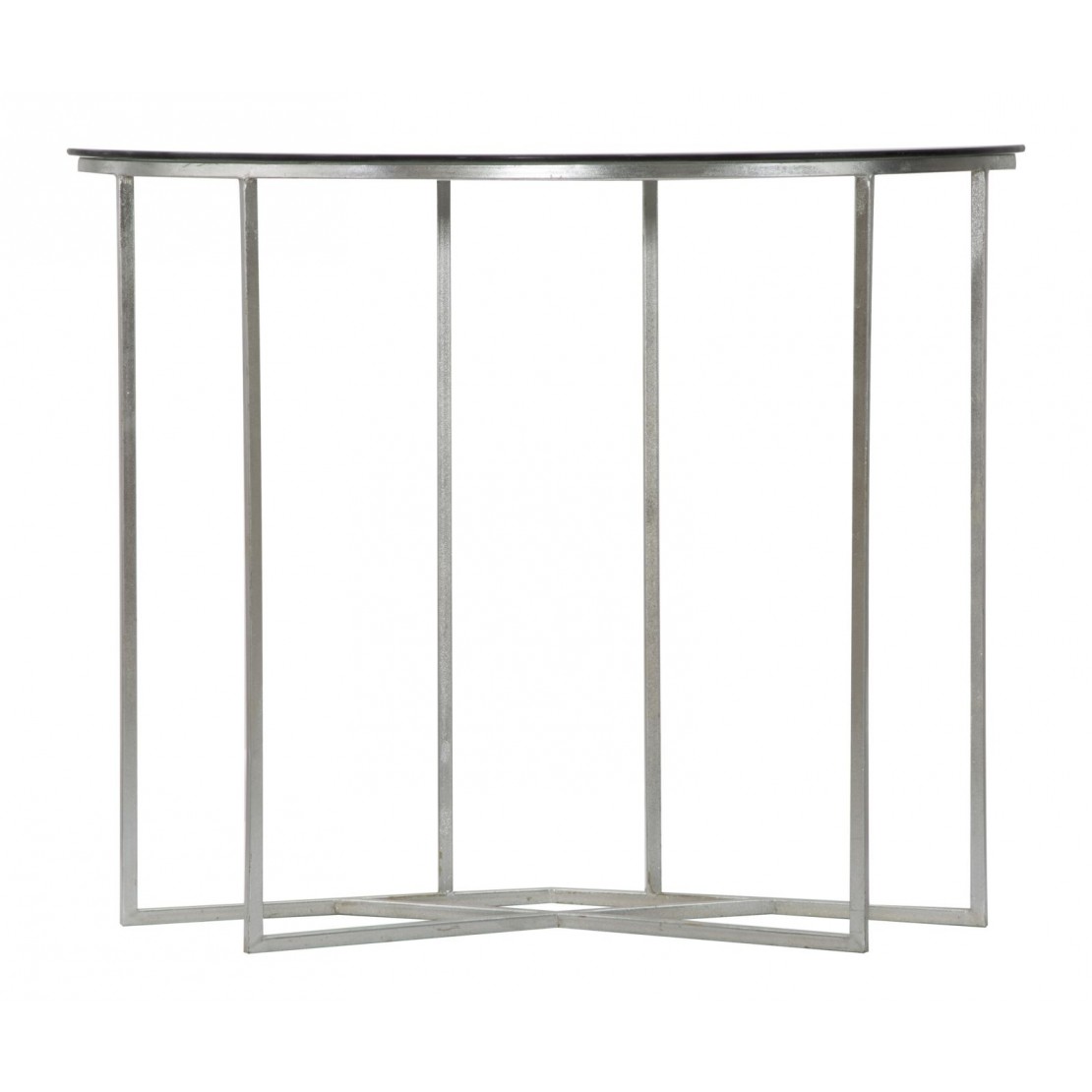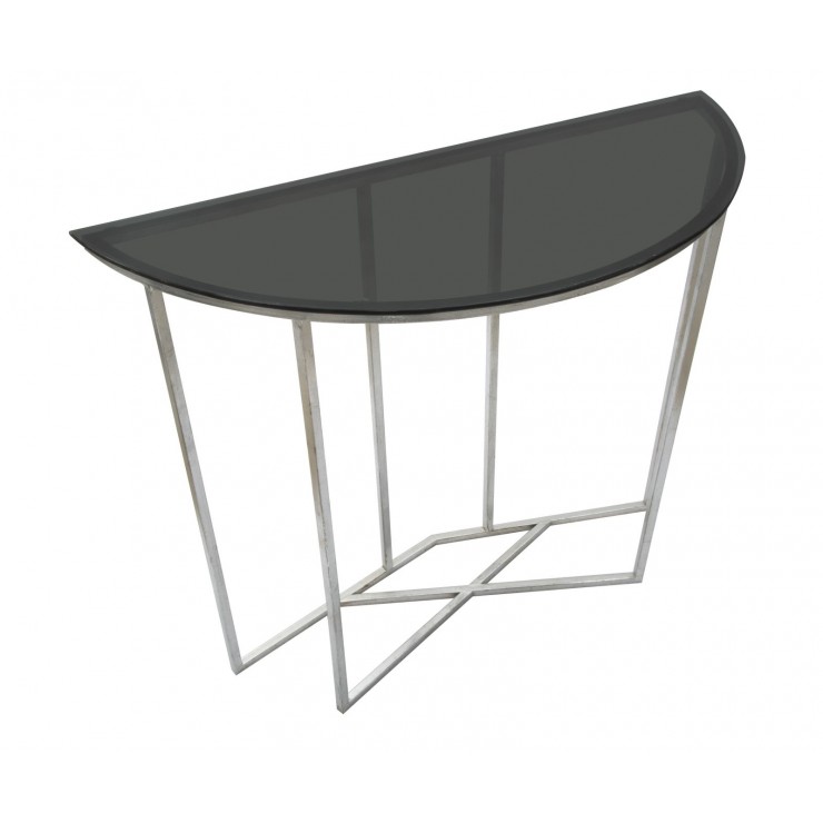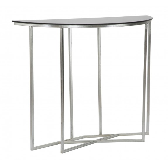 Consolle realizzata in ferro colore argento piano in vetro nero. 100 x 80 x 40 cm