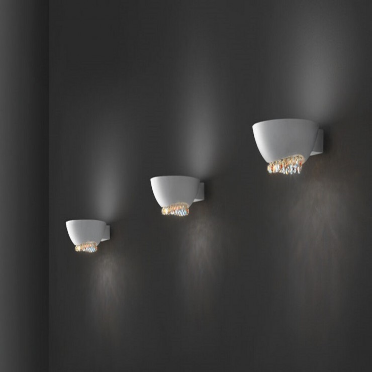 Blink è una lampada da parete a LED che emettono luce bianca di tonalità calda. In questo modo la luce sembra provenire direttamente dai cristalli, che creano uno straordinario effetto scintillante. Questa lampada è da un lato semplice per forma, dall'altro assolutamente esclusiva e certamente cattura ogni sguardo.