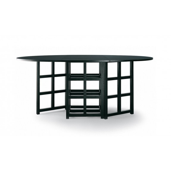 Tavolo 809 design Mackintosh C. R., by MVSEVM. E' con struttura in frassino laccato nero a poro aperto, con piano reclinabile sui due lati. Dimensioni L 55/177 cm P 125 cm H 75 cm.