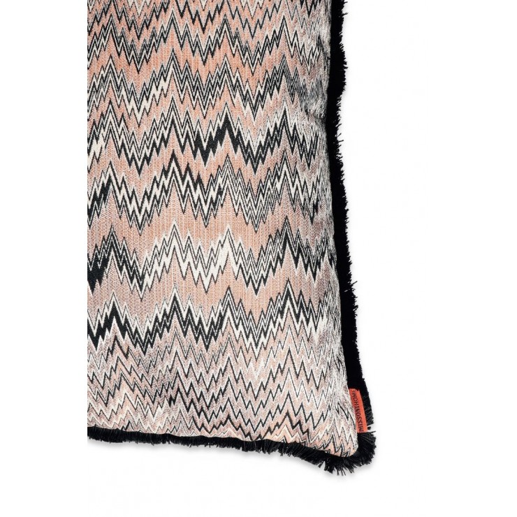 Cuscino Thailand in tessuto Jacquard double face a chevron fiammato, con frange.
