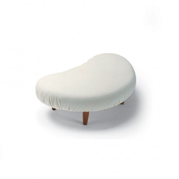 Pouff 726 design Noguchi I., by MVSEVM. E' in multistrato di pioppo e profilato di acciaio ricoperto di espanso e con rivestimento in tessuto, sfoderabile. Piedini in faggio naturale. Dimensioni L 135 cm P 81 cm H 48.5 cm. In foto tessuto bianco.