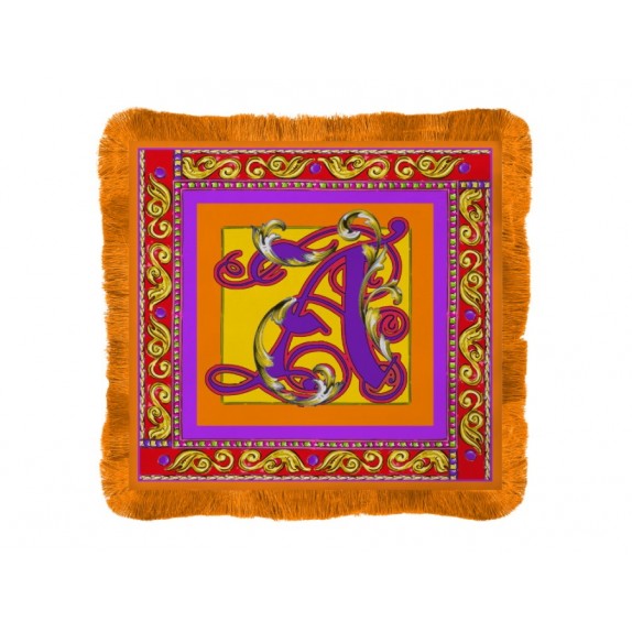 Tovaglietta in cotone con decoro siciliano e lettera A, 38x38.