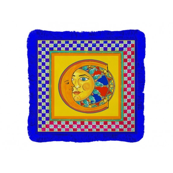Tovaglietta in cotone con decoro siciliano e lettera C, 38x38.