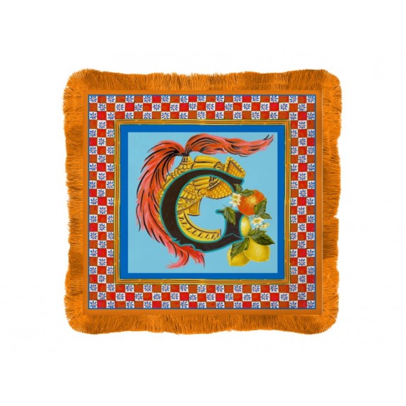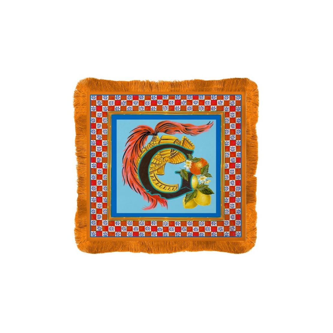 Tovaglietta in cotone con decoro siciliano e lettera G, 38x38.