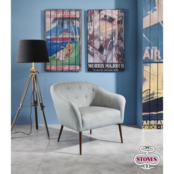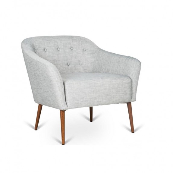 Struttura della poltrona in metallo con gambe in legno con una imbottitura al poliuretano espanso e ovatta di poliestere. Rivestito in 100 % tessuto colore grigio.