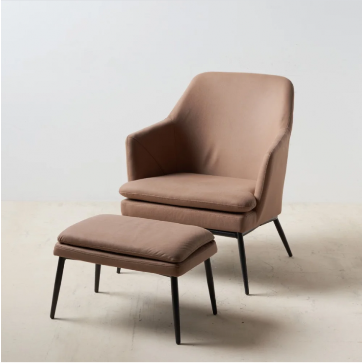 Poltrona e Pouf 121801 struttura e gambe in metallo, imbottitura in schiuma, rivestimento in similpelle, L.72 P.75 H.83,50 .