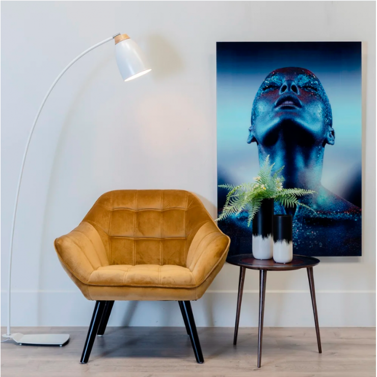 Struttura in metallo con gambe in legno di gomma colore nero, imbottitura in schiuma e rivestimento in tessuto 100% poliestere, L.83 P.75 H.75.
