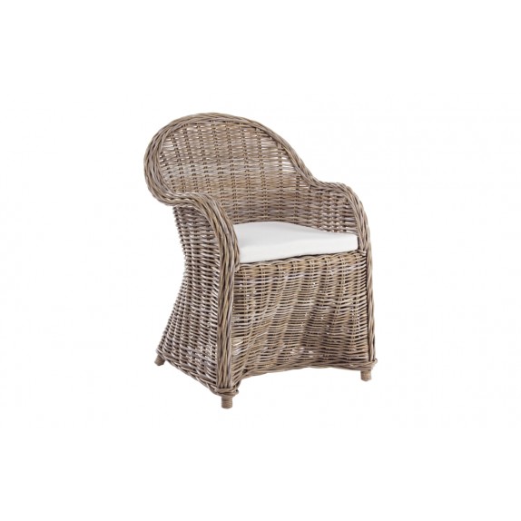 Struttura in rattan, intreccio in KUBU. Cuscino sfoderabile con tessuto in cotone. Si raccomanda di non esporre il mobile alla luce diretta del sole ed alle intemperie. Retro Schienale con applicazione di Tela colorata (CAP MARTINI) in tutte escluso il colore grigio.