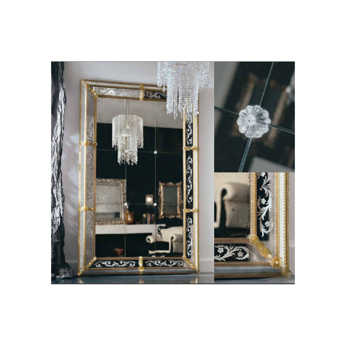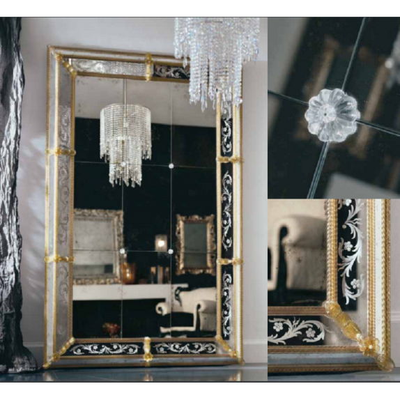 Specchio 326.84XL , realizzato con cornice in vetro di murano lavorato a mano, incisioni eseguite a mola, finitura color ambra, L.128 H.200.