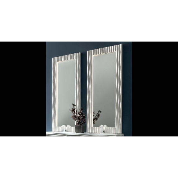 Specchiera Ebon 375, strutturato in legno massello, specchio naturale 5 mm , levigato a mano, kit illuminazione integrata, finitura bianco madreperla , L.120 H.86.