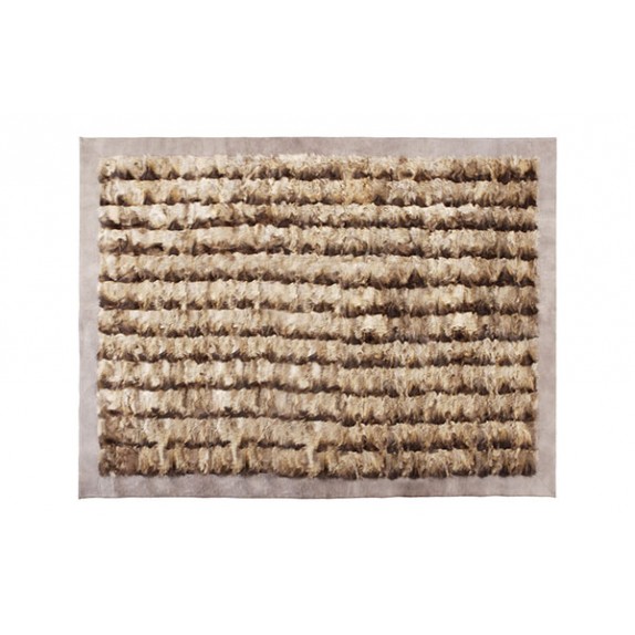 È raffinata eleganza questo tappeto in pelliccia. Grazie alle sue molteplici sfumature e alla sua straordinaria morbidezza si distingue tra tutti i complementi d'arredo per soggiorno o per l'ufficio. Le raffinate nuance chiare e scure sono racchiuse in una cornice di pelle liscia e raffinata.